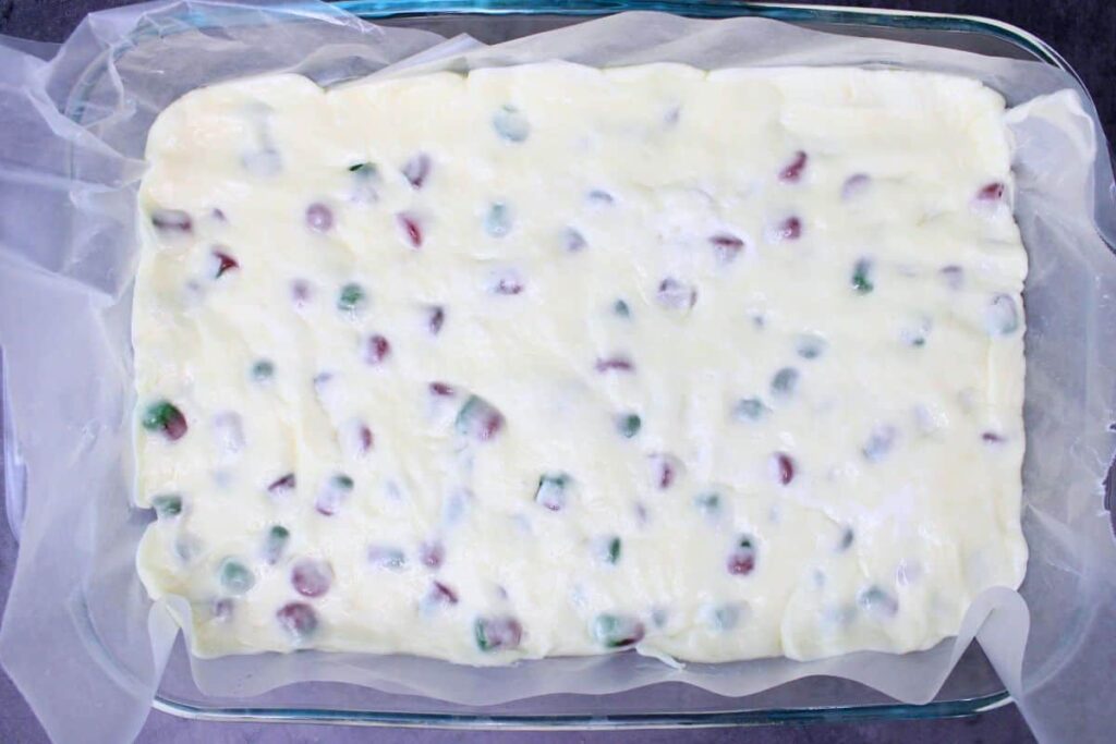 - Đổ kẹo ra khuôn đã lót giấy nến